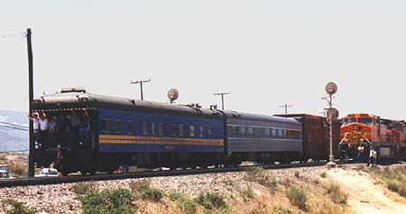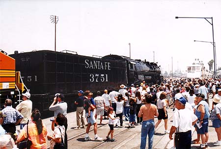A part of the crowd at the San Bernardino station. The Metro Link train in the background is one of at least nine that were in the station that day The following three photos were taken at Verdemont, just a few miles up Cajon Pass from San Bernardino. The train crossed over from the east (near) track to the west (far) track at Verdemont.