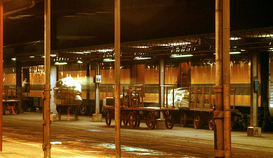 view shows the two baggage cars being loaded with mail plus an