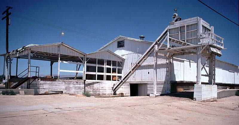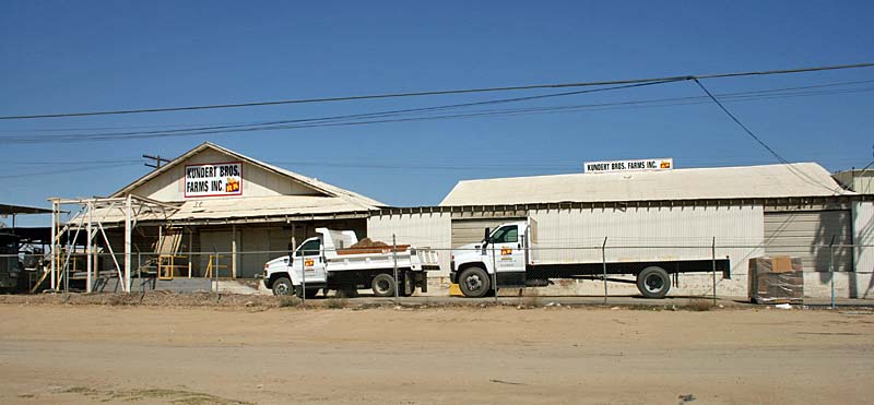 Photo 08-4a. This photo shows the track side of the Lehr Brothers "Tree Ripe Oranges" on September 8, 2008 (Robert Gaddie photo) ![]() Photo 08-5. This photo shows the truck side of Progressive Farms in Edison in September 2008 (tracks 50 and 51). (Jim Lancaster photo) ![]() Photo 08-6. This photo shows more of Progressive Farms in Edison in September 2008 (tracks 50 and 51). Note the factory-style, sawtooth roof. (Jim Lancaster photo) ![]() Photo 08-7. This photo shows the truck side of Kundert Brothers Farms in Edison in September 2008 (tracks 46 and 47). This is the opposite side of the Kundert Farms packing shed shown in Photo 79-2. (Jim Lancaster photo) ![]() Photo 08-8. This photo shows the potato loading bin of Kundert Brothers Farms in Edison in September 2008. (Jim Lancaster photo) Visit the companion web site: Historic Packing Houses and Other Industrial Structures in Southern California If you have any comments or questions please feel free to contact me at ljames1at (i.e., @) ix.netcom.com (no spaces). |