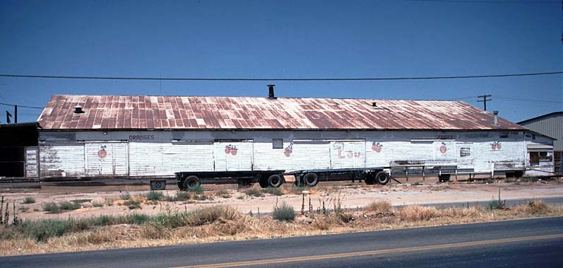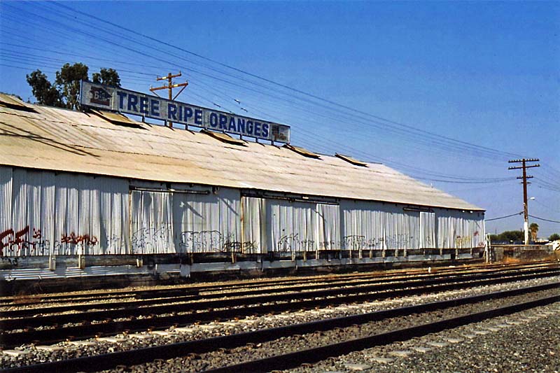 Photo 08-4. This photo shows the truck side of the Lehr Brothers "Tree Ripe Oranges" packing house in Edison in September 2008 (track 1236). The following PhotoLinks provide additional photos of the Lehr packing house. PhotoLink | PhotoLink | PhotoLink | PhotoLink | PhotoLink (All photos by Jim Lancaster)