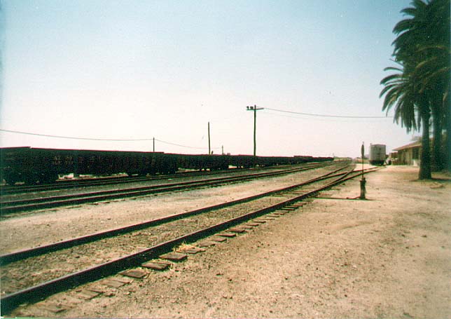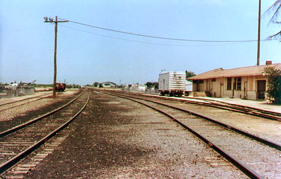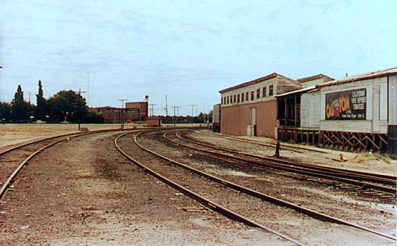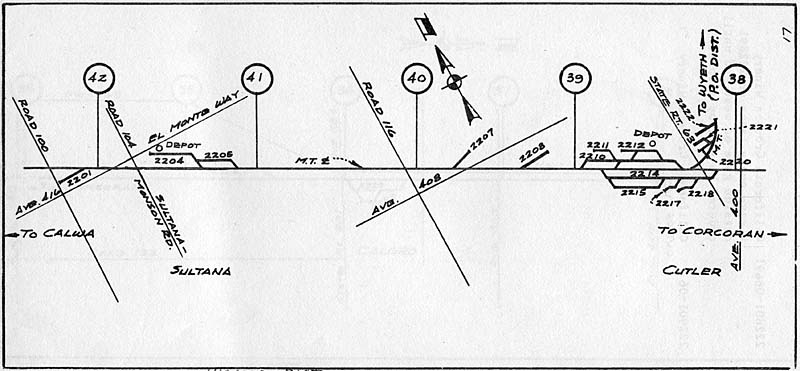 Visalia District from Visalia to Lone Star Cutler, CA All photos are copyrighted. They remain the property of the individual contributors and may not be used without permission. ![]() February 1983 CLIC Book Diagram. (Glen Icanberry collection) ![]() Cutler Track Diagram. (Randy Sunada collection) ![]() Cutler yard looking west in 1983. (Randy Sunada photo) ![]() Cutler depot in 1983. (Randy Sunada photo) ![]() Cutler yard looking east in 1983. The buildings on the right are marked Wileman & Elliot on the track diagram. The building in the distance is on the line to Wyeth and is marked simply Wileman. (Randy Sunada photo) ![]() This in an August 2007 photo that is from roughly the same location as the photo above. (James Lancaster photo) ![]() Golden State Citrus and Produce (formerly Wileman & Elliot) in August 2007. (James Lancaster photo) ![]() Wileman Bros. & Elliot packing house on the line to Wyeth in August 1989. (Cliff Prather photo) ![]() Wileman Bros. & Elliot packing house in July 2006. (James Lancaster photo) ![]() Wileman Bros. & Elliot packing house in July 2006. (James Lancaster photo) ![]() Wileman Bros. & Elliot packing house in July 2006. (James Lancaster photo) ![]() Entire Wileman Bros. & Elliot packing house in August 2007. (James Lancaster photo) If you have any comments or questions please feel free to contact me at ljames1at (i.e., @) ix.netcom.com (no spaces). |