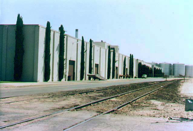 ![]() This view shows the Santa Fe tracks and the newer winery buildings and storage tanks in 1983. (Randy Sunada photo) ![]() This view is looking south across the former SP Exeter Branch (now San Joaquin Valley RR) track toward the winery in March 2008. (James Lancaster photo) If you have any comments or questions please feel free to contact me at ljames1at (i.e., @) ix.netcom.com (no spaces). |