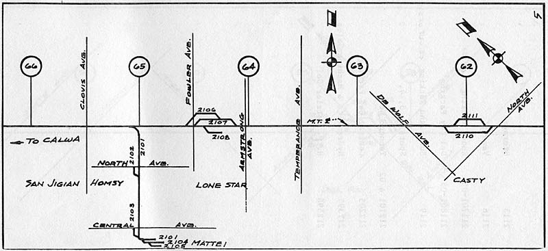 Visalia District from Visalia to Lone Star Lone Star, CA All photos are copyrighted. They remain the property of the individual contributors and may not be used without permission. ![]() February 1983 CLIC Book Diagram. (Glen Icanberry collection) ![]() Former Tri-Boro Fruit packing house in November 2006. (James Lancaster photo) ![]() Former Tri-Boro Fruit packing house in November 2006. (James Lancaster photo) ![]() Former Tri-Boro Fruit in November 2006. Siding #2106 on the CLIC diagram served the packing house. (James Lancaster photo) ![]() Former Santa Fe depot in November 2006. (James Lancaster photo) If you have any comments or questions please feel free to contact me at ljames1at (i.e., @) ix.netcom.com (no spaces). |