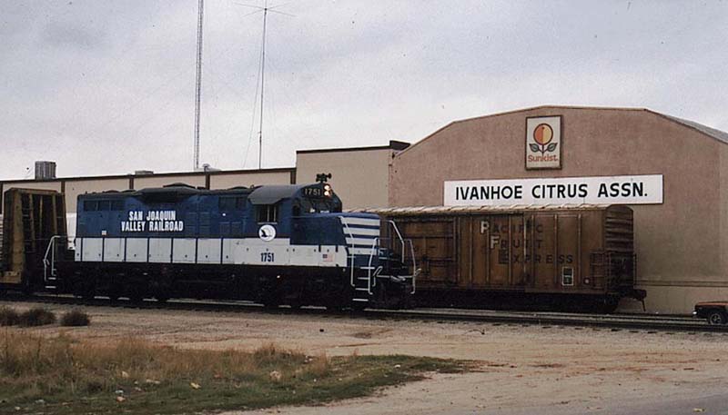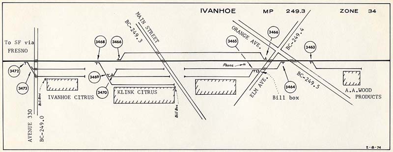 All photos are copyrighted. They remain the property of the individual contributors and may not be used without permission. ![]() February 1974 SPINS Diagram. (James Lancaster collection) ![]() Ivanhoe Citrus was still shipping by rail in November 1997. (Robert Gaddie photo) ![]() By March 2008 Ivanhoe Citrus had become the Exeter-Ivanhoe Citrus Assn. (James Lancaster photo) ![]() This is a closer look at the juice bin of the Exeter-Ivanhoe Citrus Assn. (James Lancaster photo) ![]() In August 2007 the railroad no longer serves Klink Citrus. The Exeter-Ivan Citrus Assn is in the distance on the right. (James Lancaster photo) ![]() The juice bin at Klink Citrus hides behind an overhead conveyor. (James Lancaster photo) ![]() A second overhead conveyor connects to another part