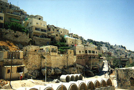 view, from near the bottom of the V-shaped Kidron Valley, looks