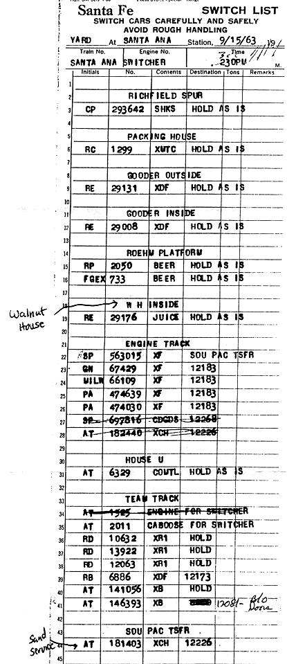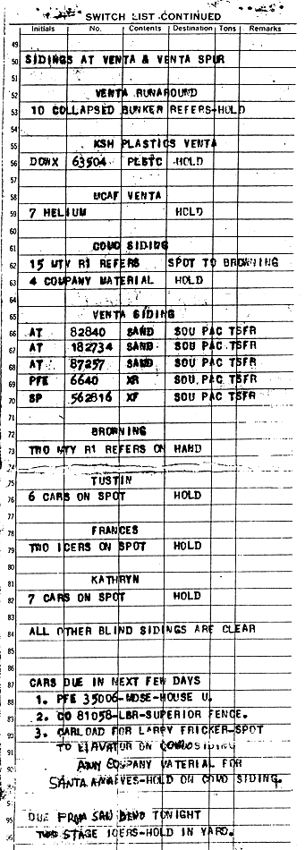 at Frances, and two at Tustin [the notation in the switch list is RD=SFRD (ice
