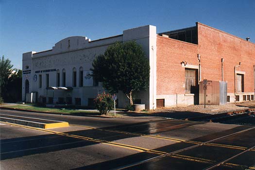Citrus Association. The building now belongs to St. Vincent de Paul. ![]() James Lancaster Photo The next photo shows the side of the building next to the tracks. (Photo-JL) followed by a close-up photo of trackside loading door number 51 (Photo-JL). The front of the building was stucco (Photo-JL). Next door on the east side was a smaller building that was also part of the complex and appears to have been an office (Photo-JL). The next photo is a view looking north-northeast from Palmyra Avenue and shows the Orange Cooperative packing house from the south (Photo-JL). A newspaper article from April 1931 told how the Orange Mutual Citrus Association had begun construction of a 158' by 85' pre-cooling plant at a cost of $80,000. It was to have twelve rooms, each capable of pre-cooling five carloads of fruit. The nearest four loading doors appear to be part of the pre-cooling structure. The doors are 50' apart. The pre-cooling plant is the higher brick building in this view (Photo-JL). Here is a close-up view of the pre-cooling plant. It is clear from the photo that there was an icing platform directly above the four nearest loading doors that are 50' apart. The openings in the railing along the edge of the ice deck are wide enough to load ice into either a 40' or 50' car. Thus this packing house could load reefers with pre-cooled fruit and ice the reefers at the same time (Photo-JL). At the south end of the packing house complex, along Palmyra Avenue, is a smaller stucco building. In June 2001 the name was still partially visible on the south end of the building (Photo-JL). It originally read: COOPERATIVE CITRUS ASSN. As of January 19, 2002 the wall had been painted and the name was no longer visible. Now we move north about one and one-half blocks. In a view looking