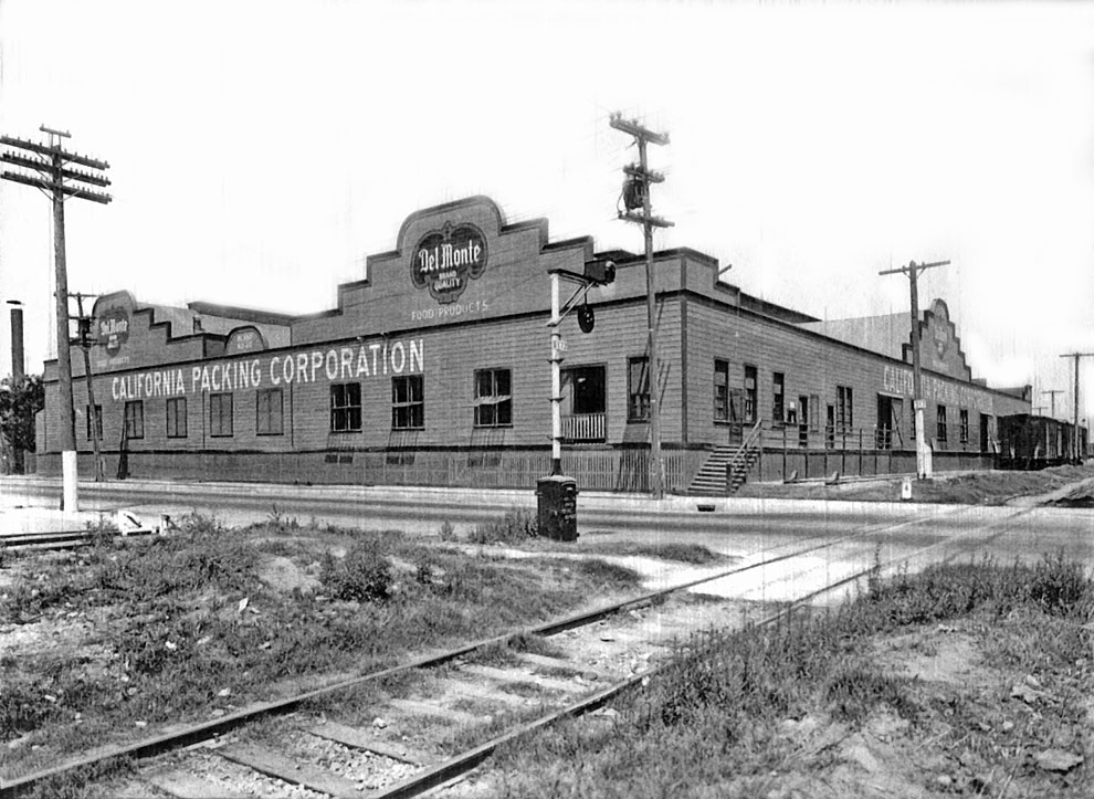 the archives of the First American Title Insurance Company in Santa Ana. ![]() First American Title Insurance Company Photo. The street in the foreground along the south side of the building is First Street and the track crossing the street next to the wig-wag signal is the SP Newport Branch. The cannery was built around 1900 and possibly first operated by the Cutting Fruit Company of San Francisco. The 1906 Sanborn map shows it as California Fruit Canners Association while the 1949 update to the 1906 map shows the building as vacant. Steve Donaldson says it had no signage on it at about that time but by the 1950s had the name Blue Hill on the building. Cliff Prather says the building was painted white by the 1960s but was unused. He thinks it may have burned down. In addition to the siding shown in the photo, there was a second siding serving the cannery from the north in the middle of the building, possibly used by the Santa Fe. Today, First Street in this location is depressed in a multi-lane underpass of the ex-AT&SF Metrolink tracks. An automobile body shop occupies the site shown in the photo. Before leaving Santa Ana we take a look back in time to a circa 1930 photo of the Horton Furniture Company (Photo-JL). Besides being owned by the family of a friend, Chet Horton, this building, which backed up to a Santa Fe siding, occupied the site of the future Santa Ana Regional Transportation Center that today serves Amtrak, Metrolink, Greyhound, and the Orange County Transit Authority. Last update: 11/2/2020