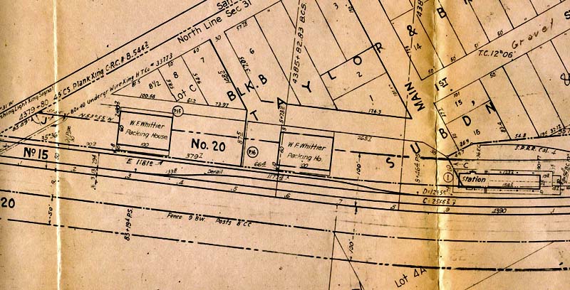 By 1985 the only thing left from the packing house was the foundations, but the spur was still there. The smudge oil tanks north of the packing house lasted until just recently. Joe Warren provided a close-up view of the tanks (Figure 6).