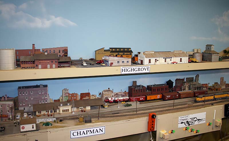 the town of Highgrove, CA on the upper deck of my HO scale model
