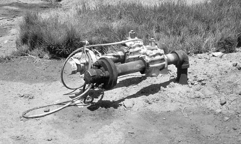 "I was in the pumping plant a few times with my Dad when I was a kid. My Dad said the pumps were originally powered by steam engines. The engines powered large wheels. The wheels were so large that pits were dug into the floor. Half of the wheel was down in the pit. These large wheels powered a belt that went to a smaller wheel. The small wheel powered a shaft that powered the pump. By the time I have any memory of the pumping plant the steam engines had been replaced by electric motors that powered the pump shafts directly. "The pits for the large wheels were still in the building when I was in there. I can remember looking down into them and thinking they were very deep. But for a kid everything looks larger than it is. "The tank at the left in the May 1964 photo was probably for fuel oil for the steam engines. In the Corona PE depot was a blueprint map of the PE tracks in Corona. It was made during the 1920's. ... The map showed a short spur into the pumping plant property. I assume this spur was for the delivery of tank cars of fuel for the steam engines. "There was also a house on the pumping plant property. A Foothill employee lived in the house. He operated the pumps." ![]() Photo 3.