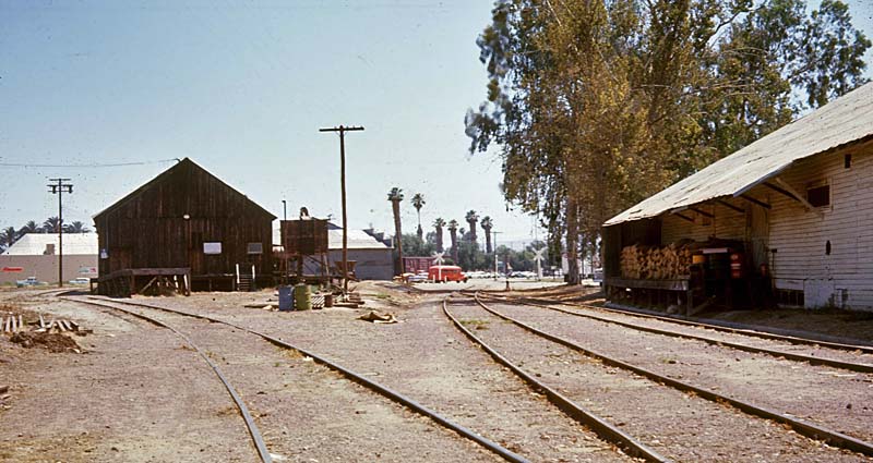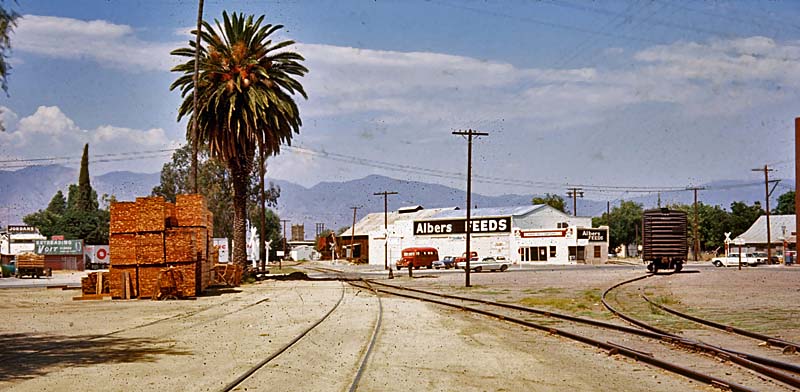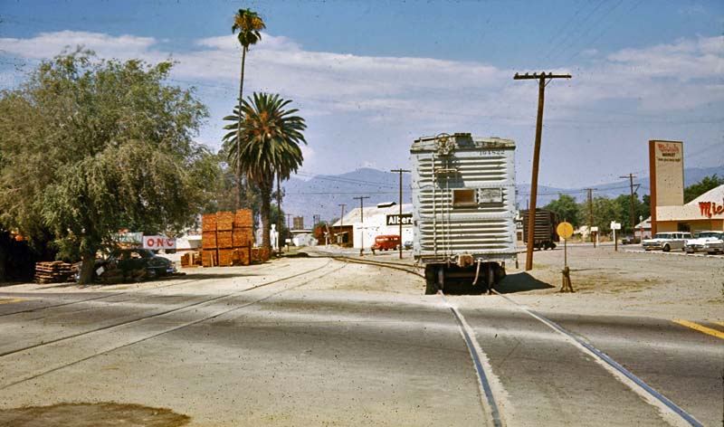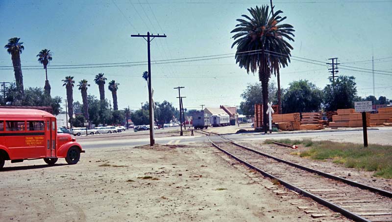 Ave with the Hemet depot in the distance behind the MoW cars. The red