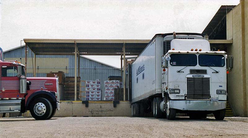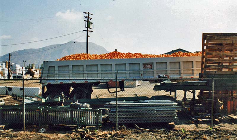 (James Lancaster photo) ![]() This view shows the east side of the California Citrus Cooperative with two wood bins. One is most likely a juice bin and the other a cull bin. (James Lancaster photo) ![]() This view shows the west side of the California Citrus Cooperative. (James Lancaster photo) ![]() This view shows the California Citrus Cooperative truck dock. (James Lancaster photo) ![]() This close-up of the truck dock shows cartons of oranges waiting to be loaded. (James Lancaster photo) ![]() This semi-trailer is loaded with juice or cull oranges. (James Lancaster photo) ![]() This 2006 photo shows the east side of the California Citrus Cooperative with only one wood bin. The nearer one in the second and third photos above has been removed. (James Lancaster photo) ![]() This close-up shows the remaining wood bin. (James Lancaster photo) ![]() In this March 2008 photo a new bin has been added to the packing house. (James Lancaster photo) Home | Central and Northern California | Models | Giant Orange Stands If you have any comments or questions please feel free to contact me at ljames1at (i.e., @) ix.netcom.com (no spaces). |