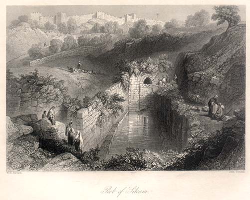 | Pool of Siloam Drawn by W. D. Bartlett, published in The Christian in Palestine, 1847. |