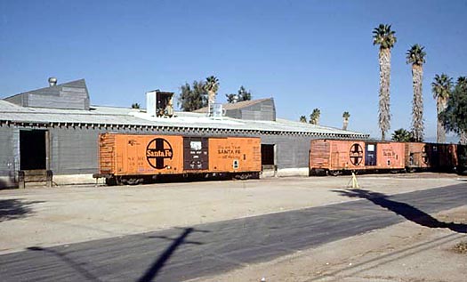 The Arlington Heights Fruit Company packing house at Prenda was at the end of a spur that ran southeast from the Santa Fe main line between Riverside and Corona. John Signor photographed the packing house and several Santa Fe mechanical reefers in January 1975. ![]() John Signor photo, used by permission.
