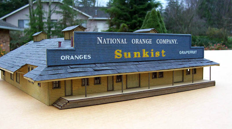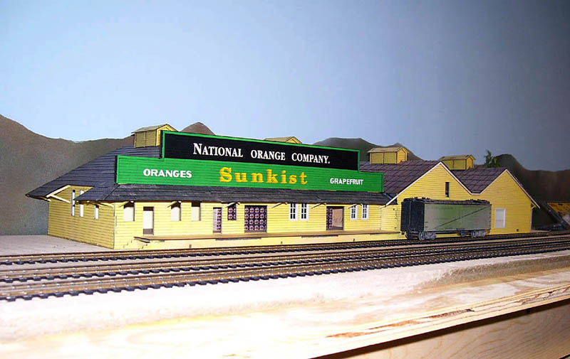 Mike Aldrich's National Orange Sunkist packing house (Posted 7/7/06) Mike built this HO model of the Riverside, CA packing house from a YesterYear Models kit.