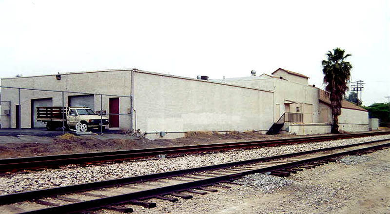 The former Glendora Co-operative Citrus Ass'n (Pure Gold) on S. Vermont Ave. and W. Ada Ave. was still standing in 2002. A photo taken in March 2002 shows the track with the foreground structure, a later commercial addition after the packing house closed in the late 1950s.