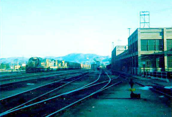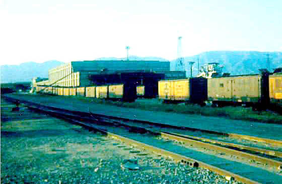 Historic Packing Houses and Other Industrial Structures in Southern California Virtual Tour of San Bernardino, CA Copyright 2005, 2006 by James E. Lancaster Notice:The images - photographs, drawings, maps and track diagrams - presented in this web site are the property of the respective contributors and may not be used for any purpose without permission. For more information see Photo Credits and Restrictions. The web site contains a large number of images. Some are displayed inline with the text. However, to control the loading time, the remaining images are viewed by clicking on the related link, e.g., (PhotoLink-JL), (Drawing-HH), etc. Please note that the images that open via these links appear in a separate web browser window. San Bernardino (ATSF, UP, PE) A large Union Ice and Cold Storage facility was located just east of the San Bernardino depot. The first three photos were taken in 2000, the fourth in 2002 or 2003.