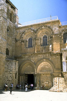 More Historic Images The entrance to the Church of the Holy Sepulchre was a favorite subject for 19th century photographers in Jerusalem. Most old photos show the ladder. Visit the Historic Image Gallery to view a few examples. Notes and Bibliography