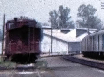 The following is Bob's descriiption of the photo: "I am standing on the Pacific Electric Corona line. The branch ends about 100 yards behind me. The track curving to the right is the PE "main line" and it will cross Railroad Avenue. Beyond Railroad Avenue is a passing track (see Figure 3). Then the line continues on private right of way to Third Street. It operates down the middle of Third Street to east Grand Boulevard where it regains private right of way and continues to Riverside. The track going straight in the photo serves theJameson Company packing house. The packing house can be seen at the end of the track. To the left of the PE track is the Santa Fe spur serving the packing house. To the left of the spur is the Santa Fe main line. To the left of the main line is the Corona Citrus Association packing house. Since it was January the refrigerator cars are for Navel oranges that were being harvested." A 1960s-era Sunkist map indicates that the Jameson packing house was by then part of the Corona Citrus Association. The packing house closed in 1963 and, after a fire in 1974, was torn down in 1975. The packing house shows in the background of Figures 8 and 9 - photos taken by Cliff Prather in 1968.