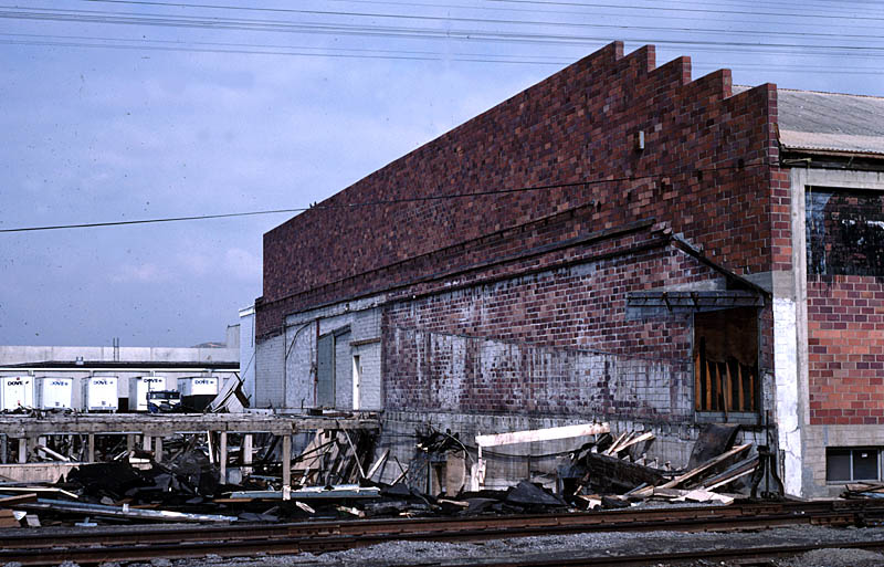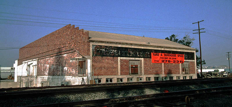 The Corona Foothill Lemon packing house closed in 1966 and a part of the original wooden structure was demolished in 1972. Figures 11-15 show the remaining parts of the packing house up to 1990. A new Corona Foothill Lemon packing house was built in the post-WW2 period south of the Santa Fe tracks at Howard St. (Location 7). The roof of the packing house can be seen in Figure 2 and at the very bottom of Figure 16.
