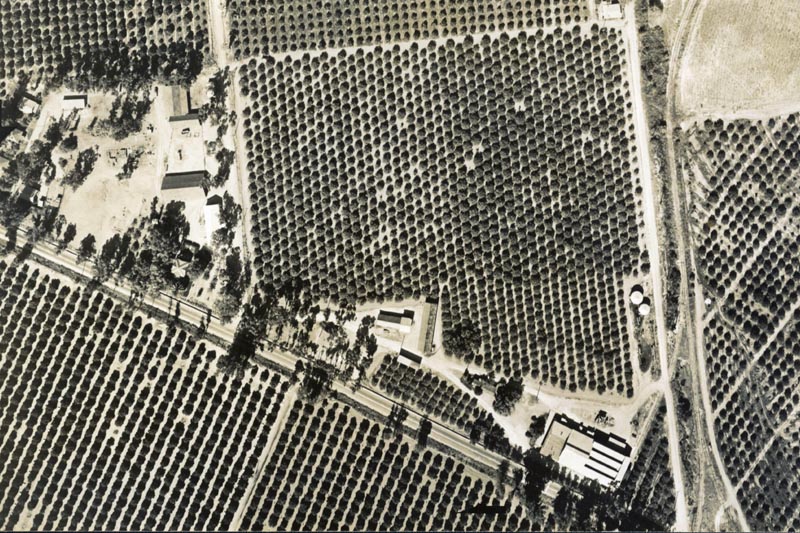 1940s A new Orange Heights Orange Association packing house was built east of the former A. F. Call packing house in 1942 (Location 13) after their packing house at Howard St (Location 7) burned down in September 1941. The packing house is shown in Figure 26. A Sunkist map from the early 1960s indicates that at that time Orange Heights Orange Association also operated a packing house at the site of the former A.F. Call Estates (Location12).
