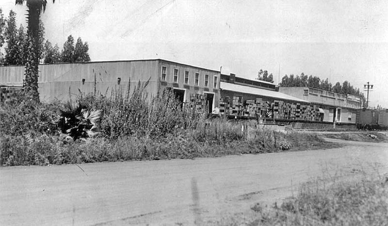 The CCA packing house was rebuilt in 1947 and a photo taken in 1956 shows it in operation under the Sunkist label (Figure 6). The CCA packing house had a capacity for 120 cars of fruit in two pre-cooler rooms and three lemon storage rooms. It was no longer in use as a packing house in 1990 (Figure 7).