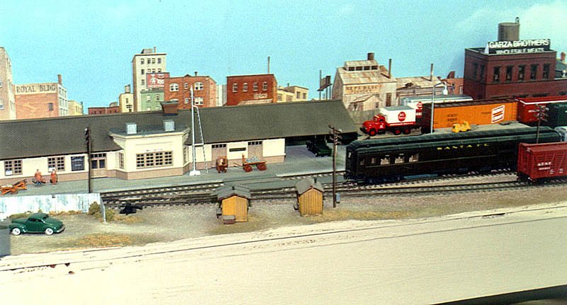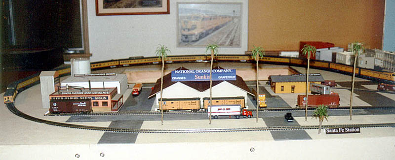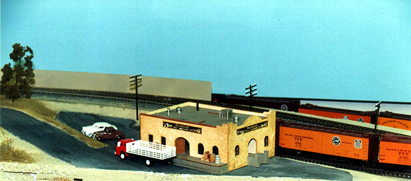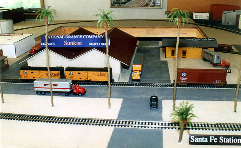 The new Riverside extension looking east. That's an exact size mock-up of the National Orange packing house that will be built from a YesterYear Models kit. It is a large structure. ![]() Here's a closer view.