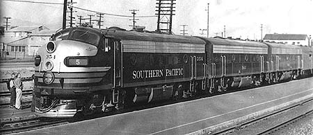 Two young railfans look on as the westbound Argonaut pauses at Alhambra, its last stop before Los Angeles Union Passenger Terminal. The image was scanned from a somewhat wrinkled print rescued from an SP crew room.