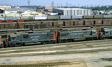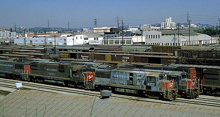 Bull Ring Yard was host to three tracks of out-of-service Alco Century 628 and 630 and GE U-25B an U-28C locomotives.