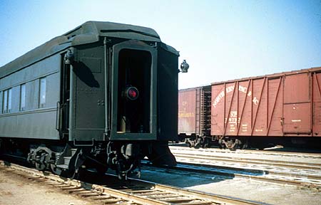 ![]() 2. The classic end of a heavyweight Pullman. And notice the single sheathed Northern Pacific boxcar in the background.