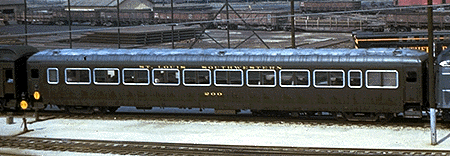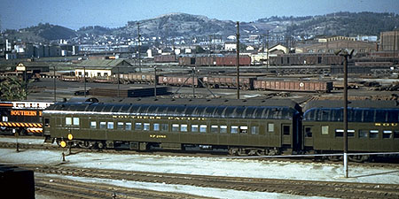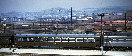 ![]() 4. This Harriman diner is flanked by two interesting cars: an "American Flyer" chair car on the left and a solarium on the right.