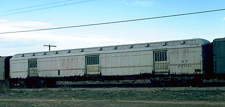 Three of these cars, SP 5217-19, were rebuilt from baggage-horse cars (see Photo #5) in the early 1950s (two in 1950 and one in 1954). Two similar (but not identical) cars, SP 5044-45, were rebuilt in 1954 from 77-foot dining cars. The five cars operated on the San Joaquin Daylight and Owl (and occasionally other trains) until the mid-1960s when the SP received 17 new lightweight baggage-mail cars. For more on thes cars see my article in the SPH&TS Trainline No.22.
