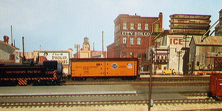 The Gavilan Citrus Association is on the left. The righthand track serves the loading doors of the Golden State Hardware Distributors. The prototype Gavilan Citrus Association was located on the Santa Fe at Arlington between Corona and Riverside.