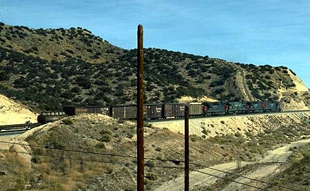 2. The freight departs. Not much of a photo since I forgot my "pole filter." But what caught my eye when I was looking for old photos to scan was the sixth car in the train - the six-dome tank car. I've got one of these unusual cars on my HO model railroad.