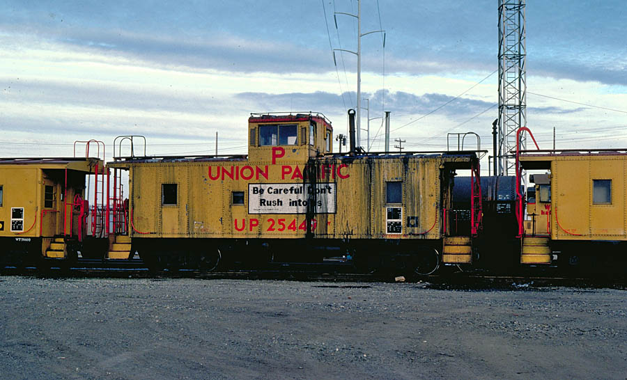 In January, 1979 I spotted this UP caboose in the yard in Seattle. It appears to have had a really bad day!